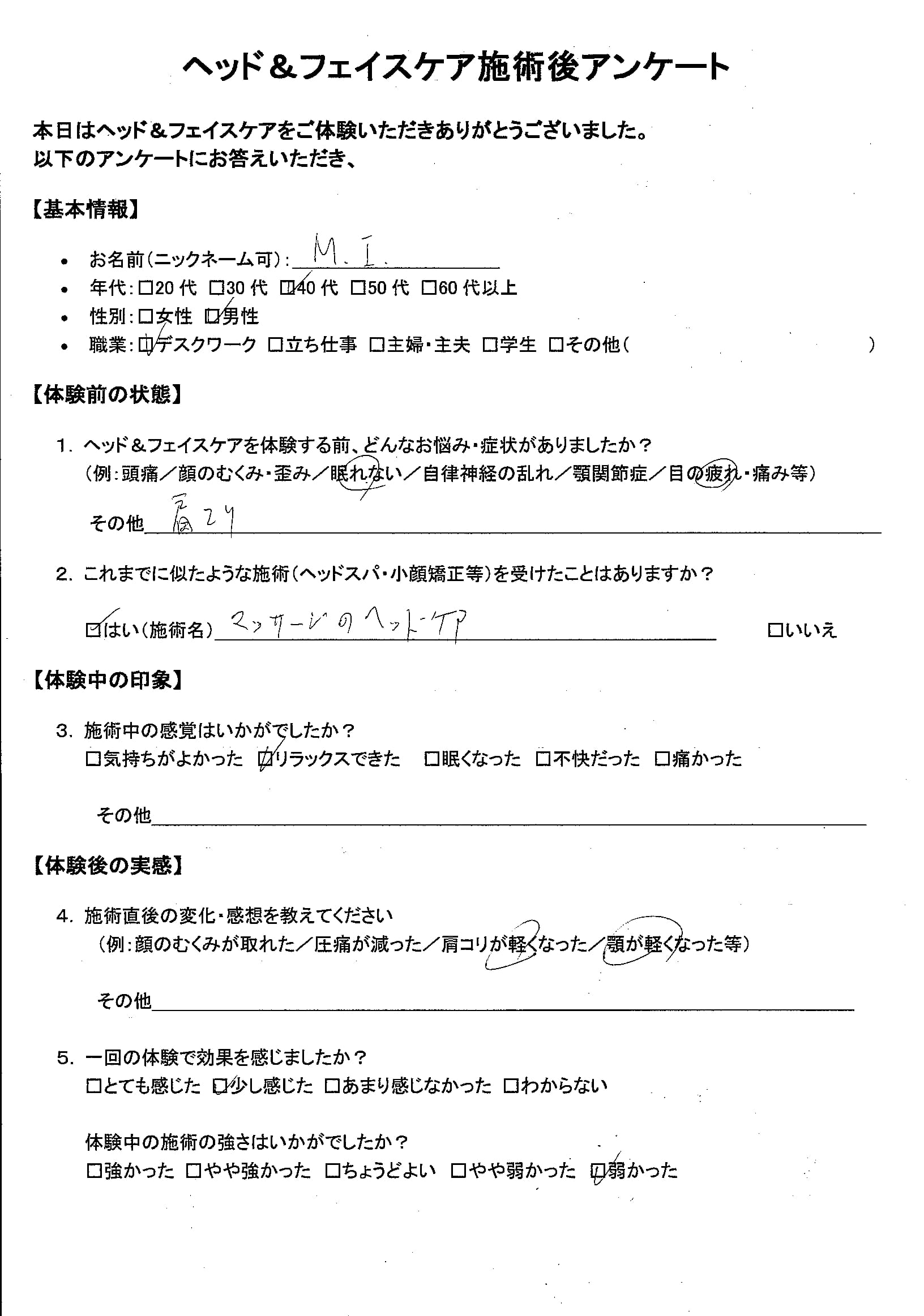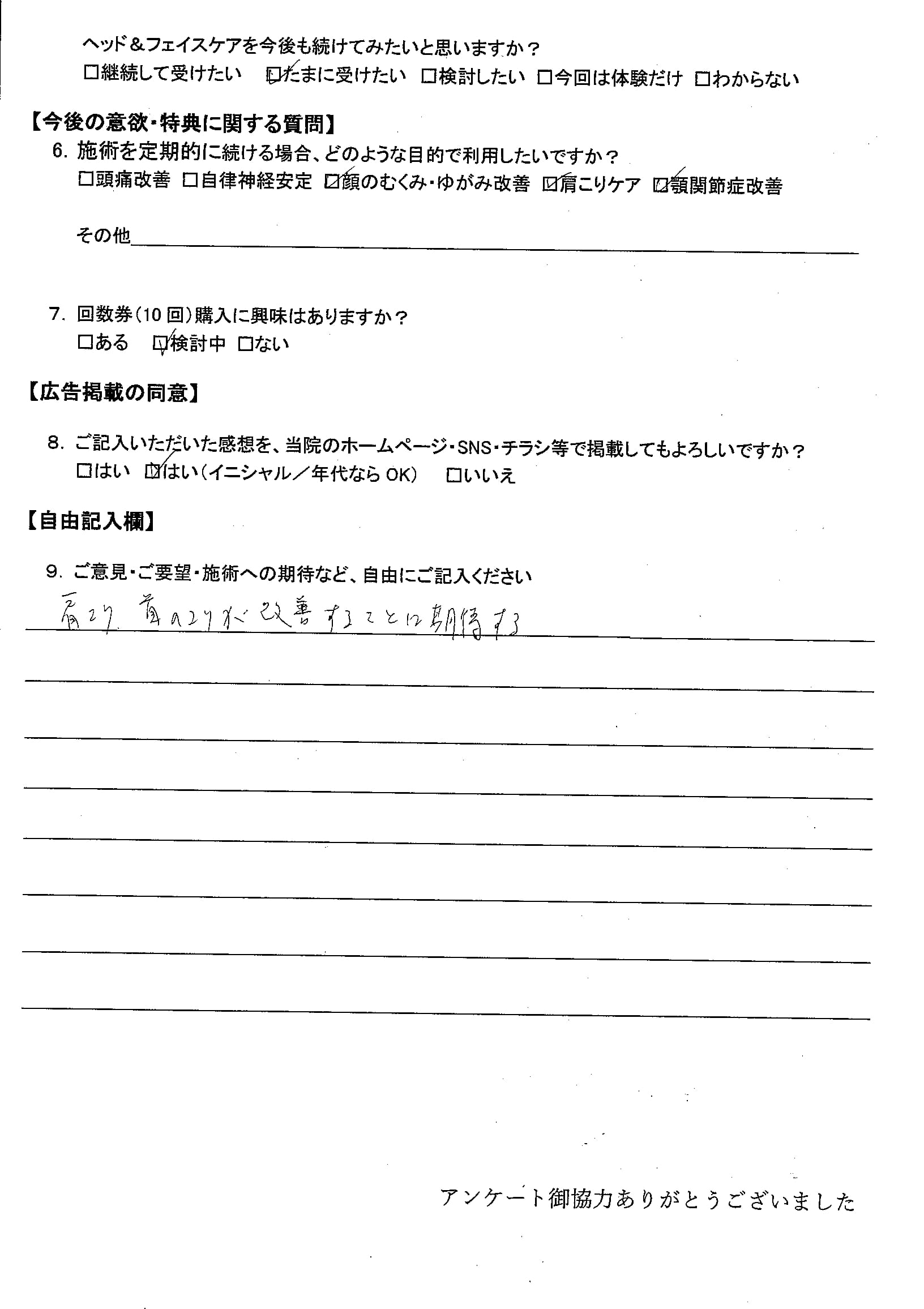 施術中に顎の緊張がスーッと抜け、終わった後は口が開けやすくなりました。