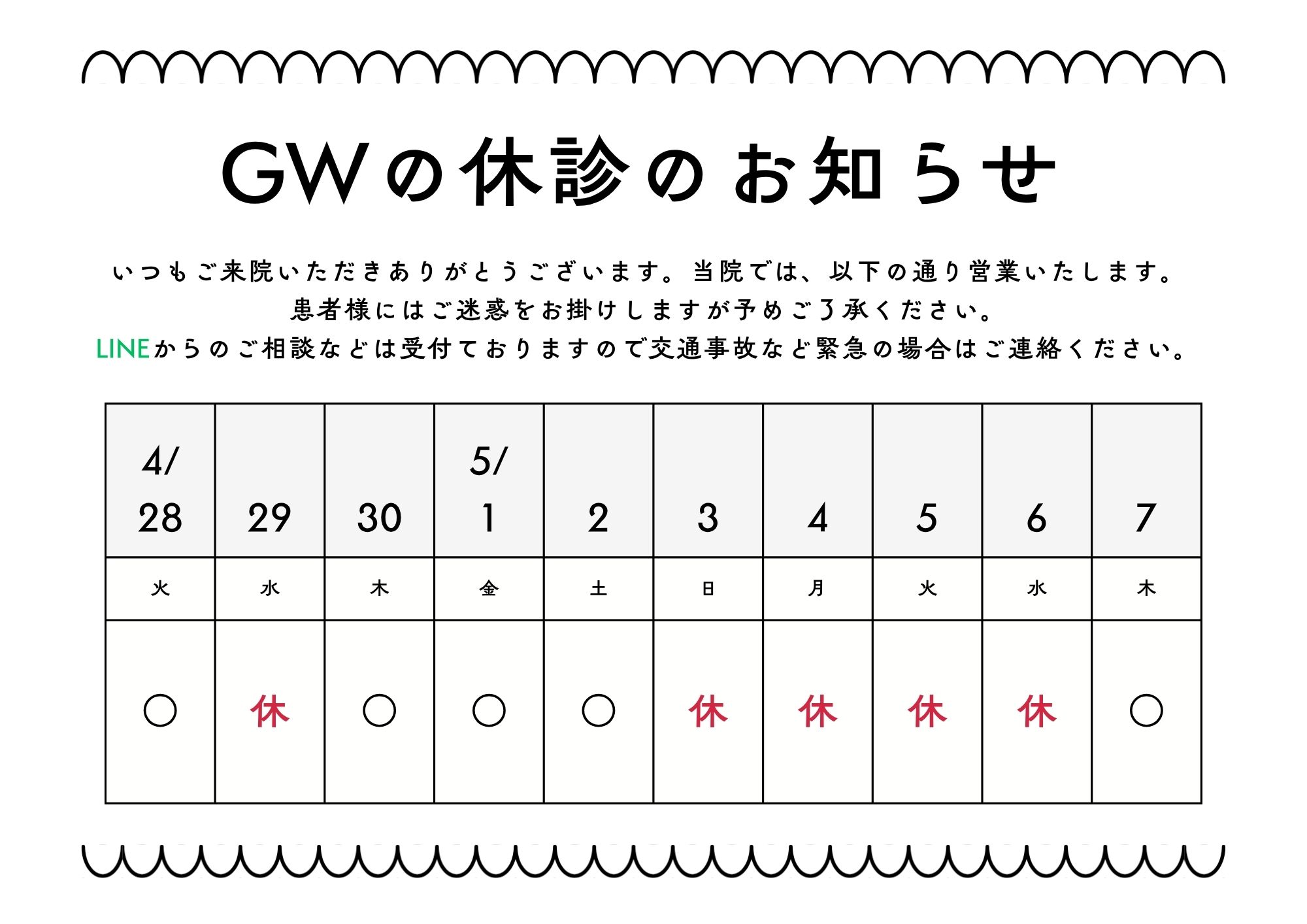 以下がGWのお休みです